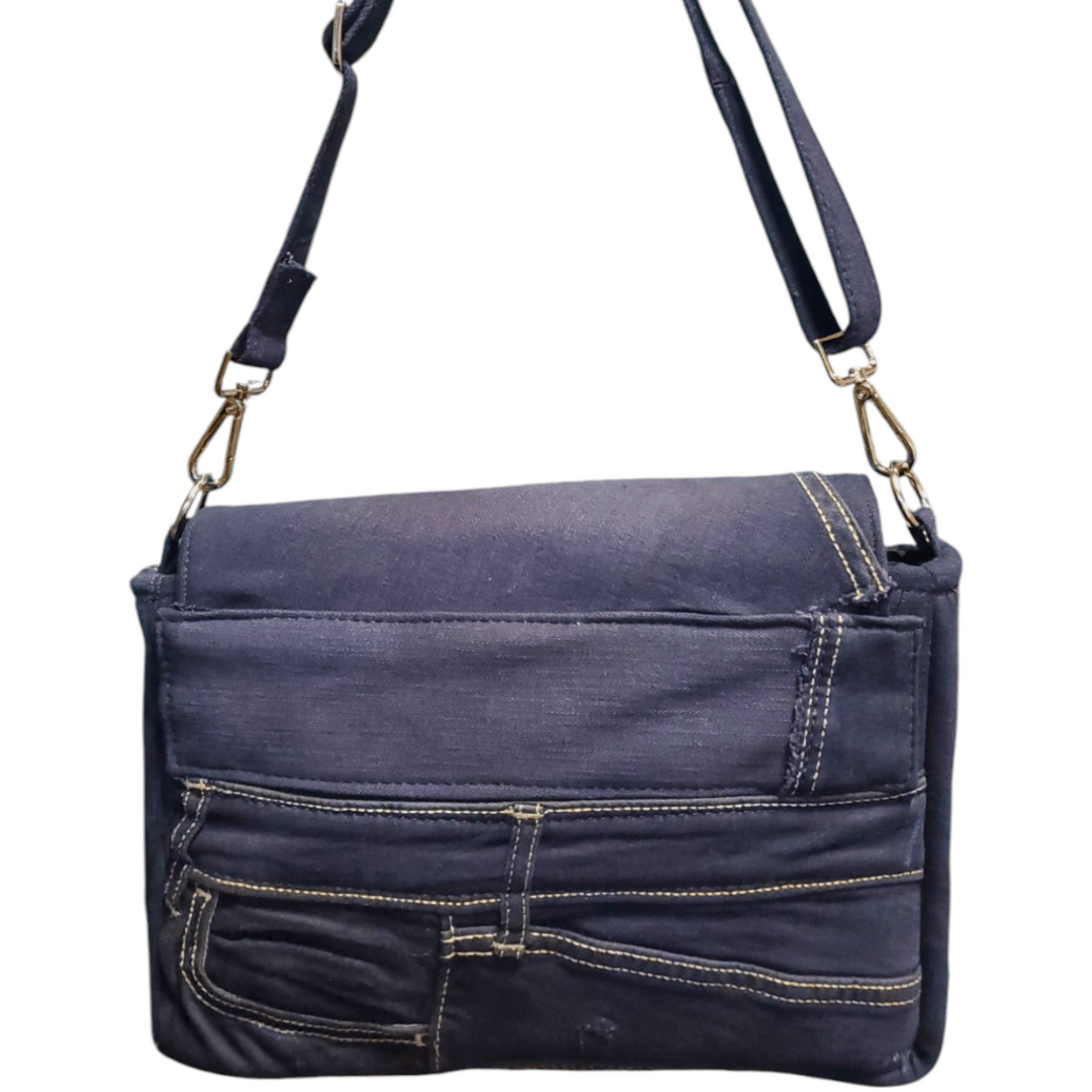 100% Handmade - Repurposed denim outer shell. Dead stock Fabric lining.